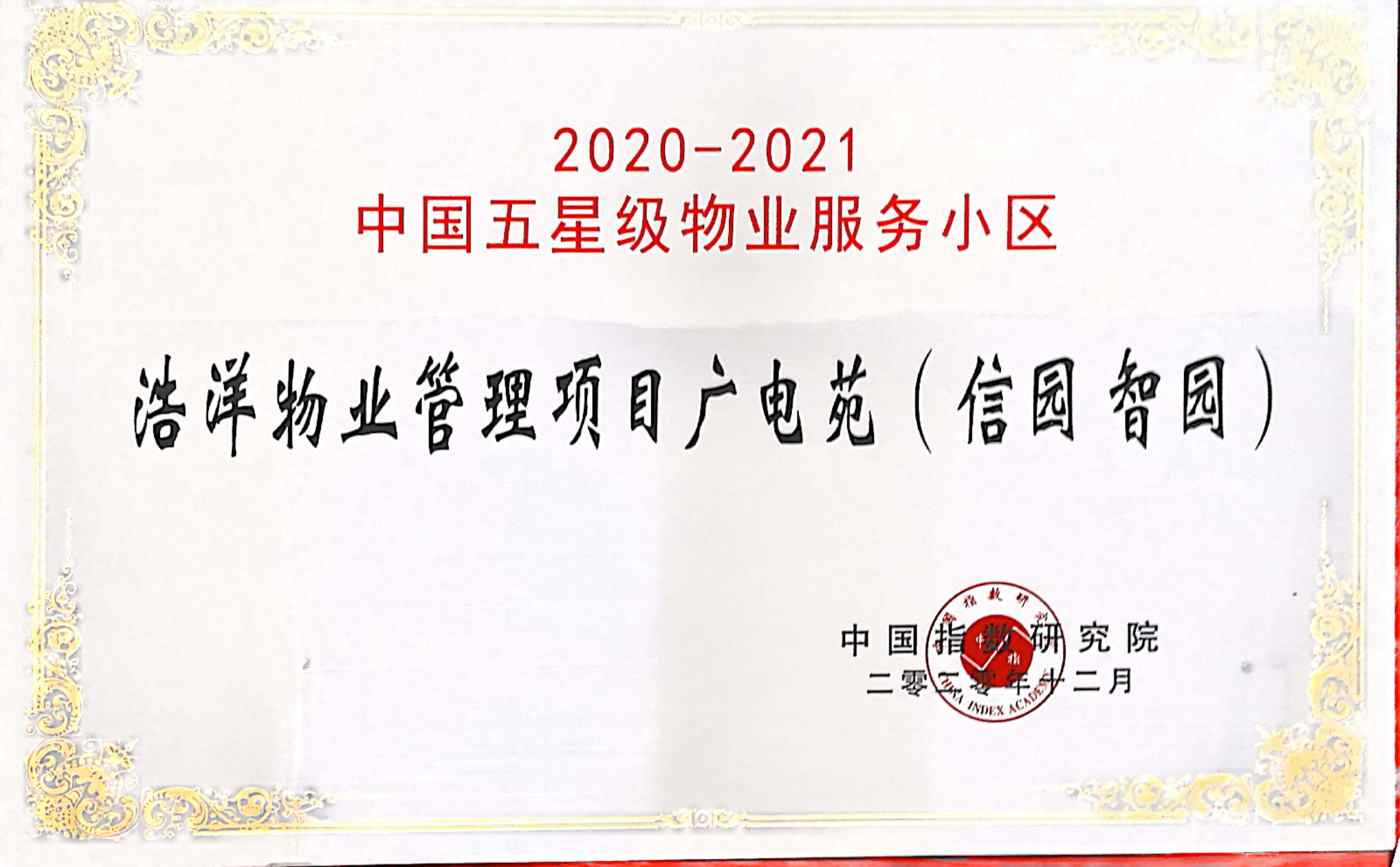 公司服務(wù)管理的“廣電苑-信園”、“廣電苑-智園”小區(qū),榮獲“中國指數(shù)研究院”頒發(fā)的“中國五星級物業(yè)服務(wù)小區(qū)”