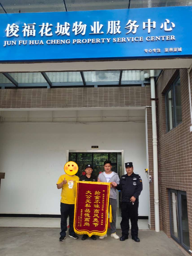近日,我公司秩序員王家體在園區(qū)內(nèi)巡邏拾到手機一部,該員工撿到手機后主動上報至班組主管。之后住戶至物業(yè)服務(wù)中心反映手機丟失,秩序主管極聯(lián)系班組員工,在確認手機實為該住戶所有后將手機歸還住戶。住戶對李嵩云主管的工作效率給予很大的肯定,也對秩序員王家體同事拾金不昧的精神表示贊揚。兩位員工的工作態(tài)度及效率得到住戶認可,并為兩位同事送上錦旗。