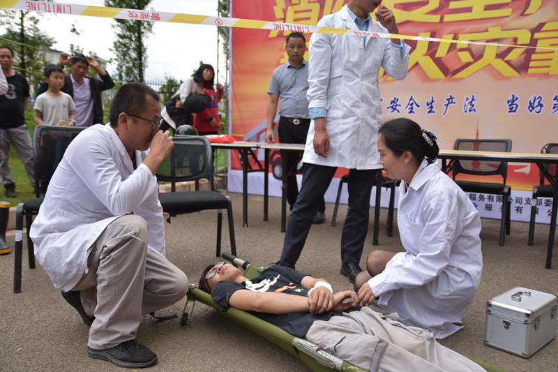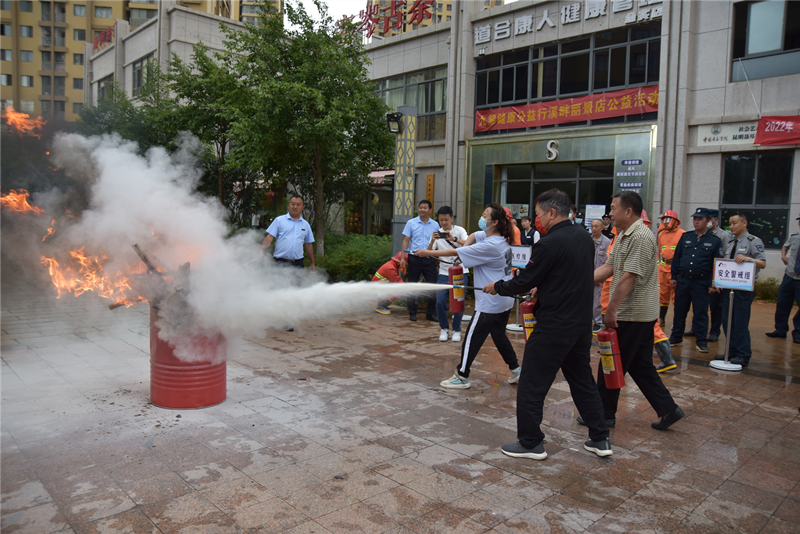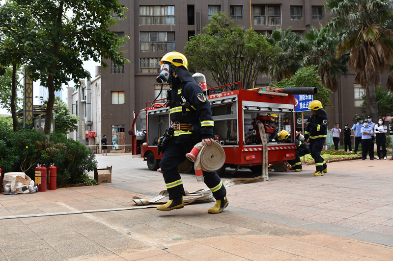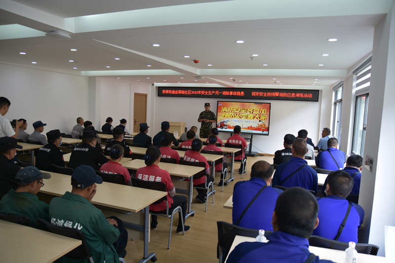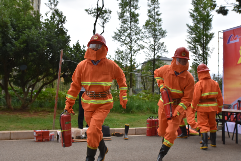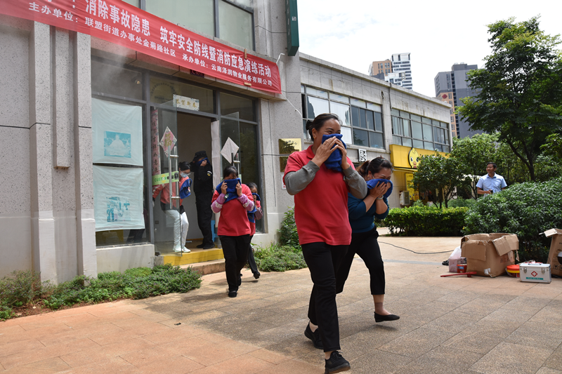 6月23至24日,公司分別在俊?;ǔ翘旄T?、溪畔麗景開展了火災(zāi)應(yīng)急演練。演練分為現(xiàn)場消防安全知識宣講和實戰(zhàn)演習(xí)兩部分。安全知識宣講部分由外請的應(yīng)急救援教官向參演人員宣講滅火器使用方法和消火栓箱使用方法。安全知識宣講后,現(xiàn)場開始實戰(zhàn)演練,突然間現(xiàn)場48棟1107室冒出濃煙,監(jiān)控室人員發(fā)現(xiàn)火情后迅速拉響消防警報,并向服務(wù)中心應(yīng)急指揮小組報告,應(yīng)急指揮小組立即啟動消防應(yīng)急預(yù)案,服務(wù)中心應(yīng)急救援小組員工攜帶干粉滅火器迅速抵達現(xiàn)場控制火情,只見火勢逐漸被壓制,但是一袋衣物倒掉增加火勢又反撲增大,這時社區(qū)消防隊趕到,4名消防員協(xié)助應(yīng)急救援小組迅速完成水帶、水槍對接口、甩水帶、打壓射水系列動作,一股激流射向熊熊火焰,轉(zhuǎn)瞬大火被撲滅,火災(zāi)被順利消除,現(xiàn)場響起一片掌聲。
